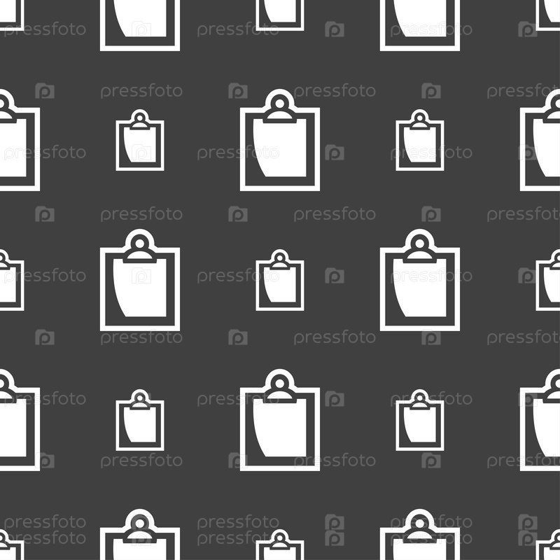 Лист бумаги значок знак. Бесшовный узор на сером фоне. Вектор