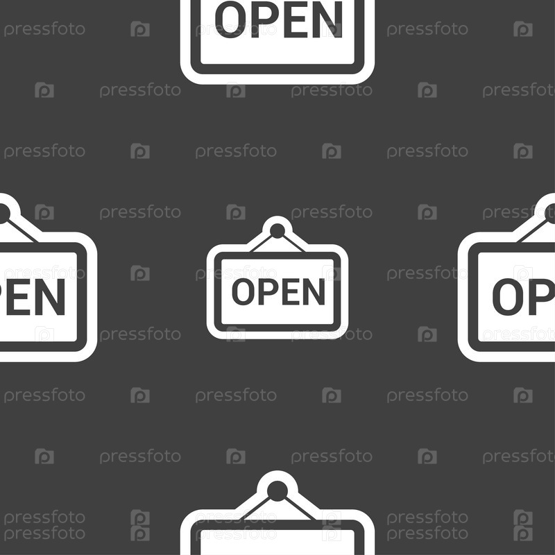 Откройте значок знак. Бесшовный узор на сером фоне. Вектор