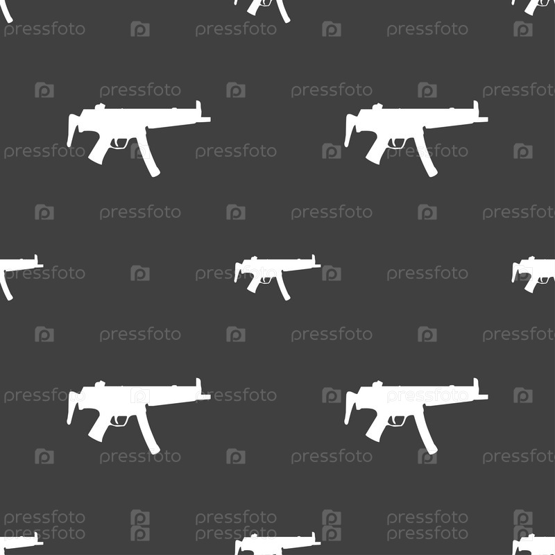 Пулемет значок знак. Бесшовный узор на сером фоне. Вектор