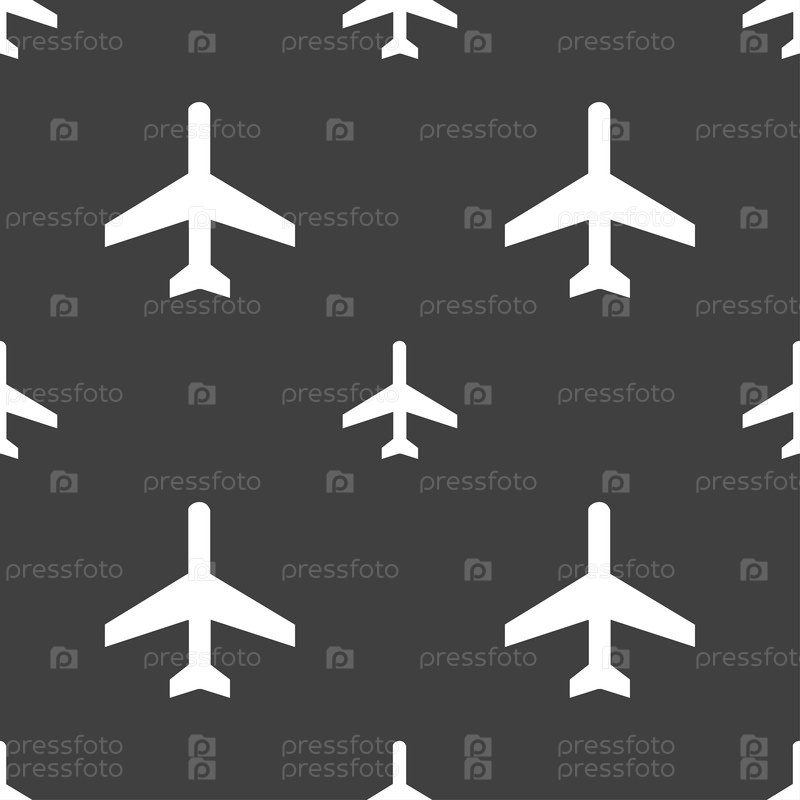 Самолет значок знак. Бесшовный узор на сером фоне. Вектор