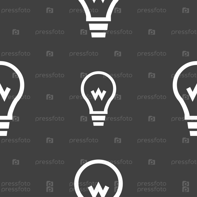 Свет лампы значок знак. Бесшовный узор на сером фоне. Вектор