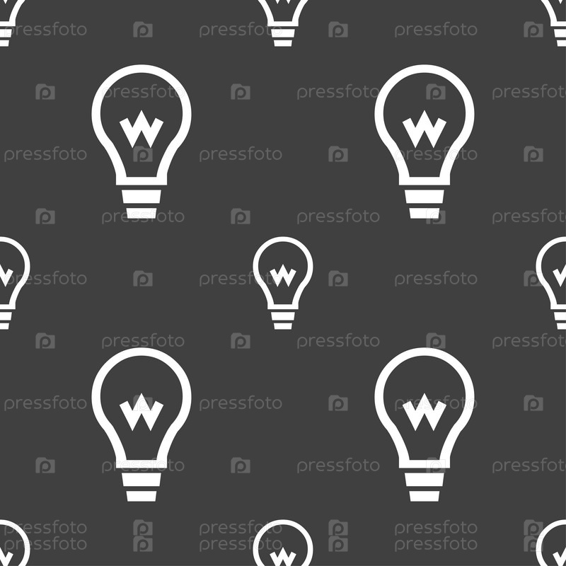 Свет лампы значок знак. Бесшовный узор на сером фоне. Вектор