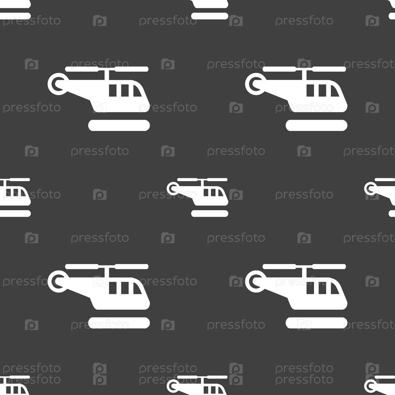 Вертолет значок знак. Бесшовный узор на сером фоне. Вектор
