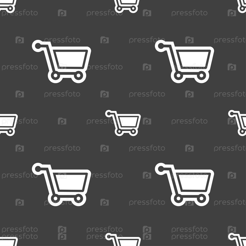 Торговый знак значок Корзина. Бесшовный узор на сером фоне. Вектор