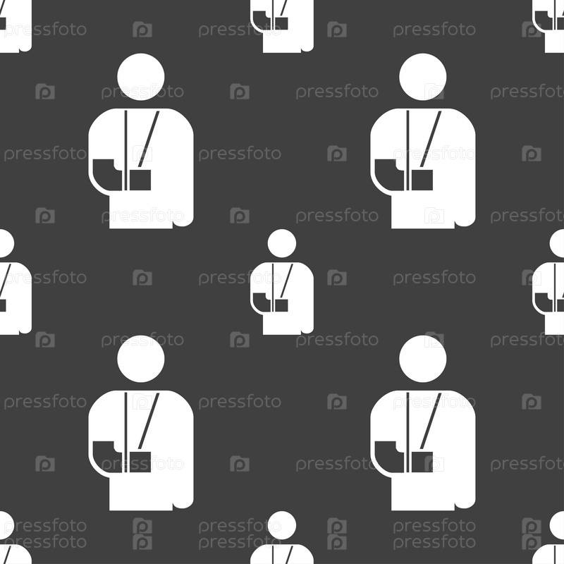 Сломана рука, инвалидности значок знак. Бесшовный узор на сером фоне. Вектор