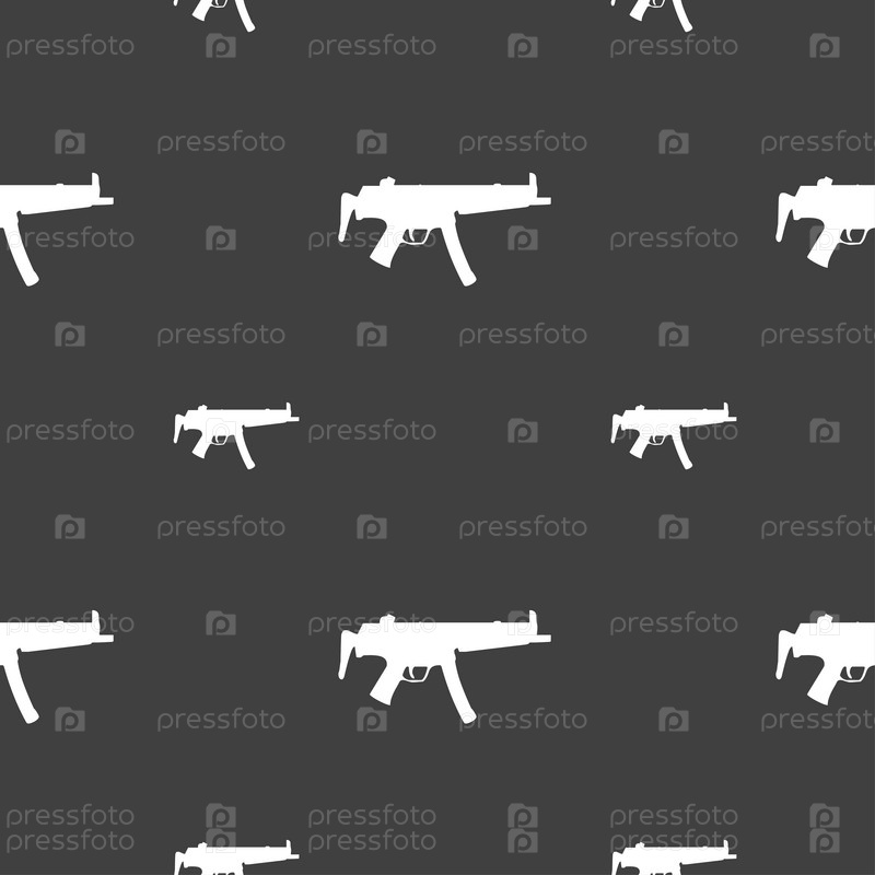 Пулемет значок знак. Бесшовный узор на сером фоне. Вектор