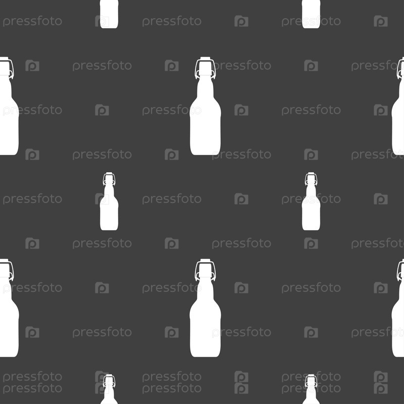 Бутылка значок знак. Бесшовный узор на сером фоне. Вектор
