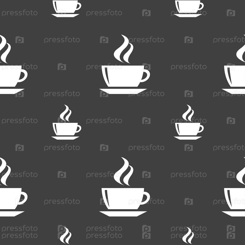 Чай, кофе значок знак. Бесшовный узор на сером фоне. Вектор