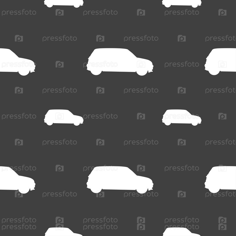 Джип значок знак. Бесшовный узор на сером фоне. Вектор
