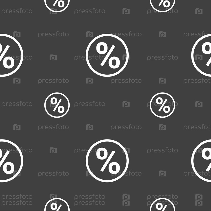 Процент скидки значок знак. Бесшовный узор на сером фоне. Вектор