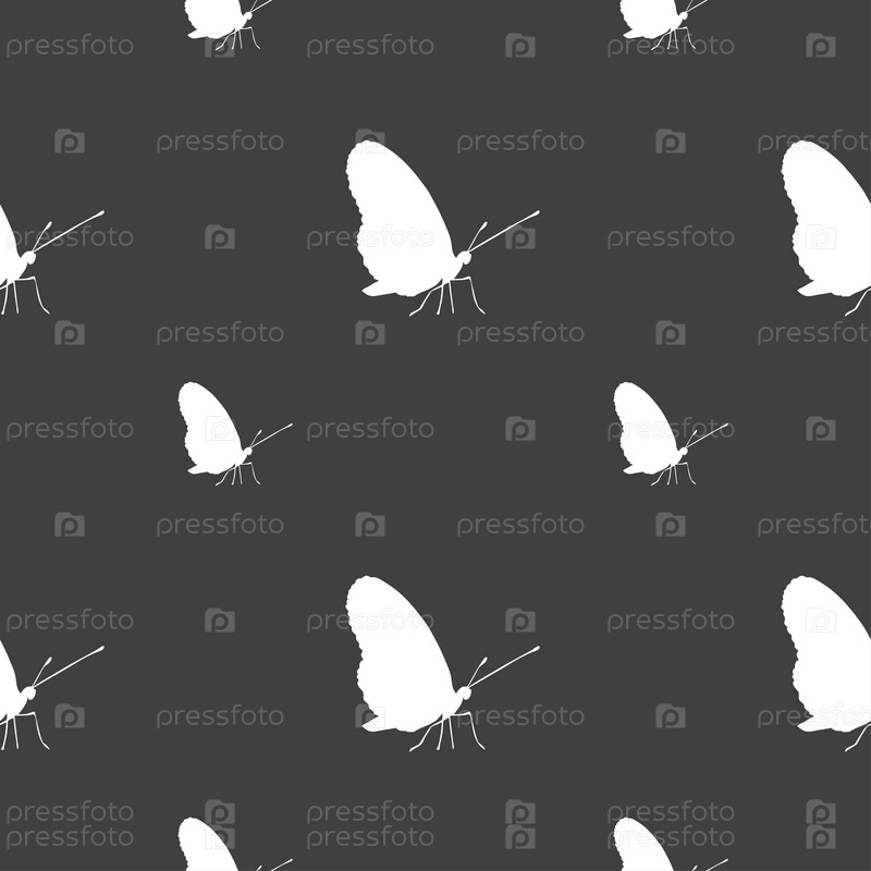 Бабочка значок знак. Бесшовный узор на сером фоне. Вектор