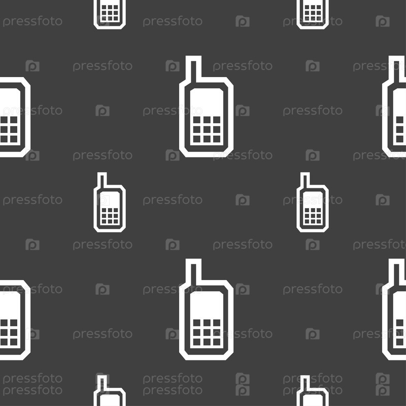 Мобильный телефон значок знак. Бесшовный узор на сером фоне. Вектор