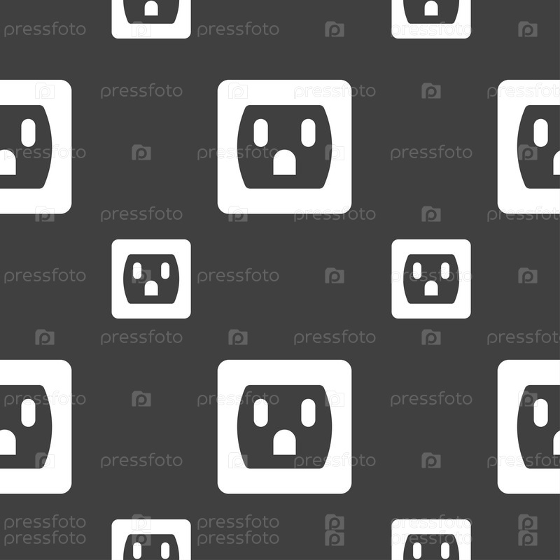 Электрическая вилка, сила энергии значок знак. Бесшовный узор на сером фоне. Вектор