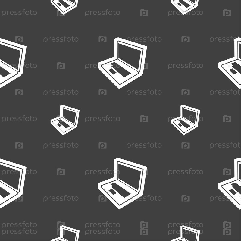 Ноутбук значок знак. Бесшовный узор на сером фоне. Вектор