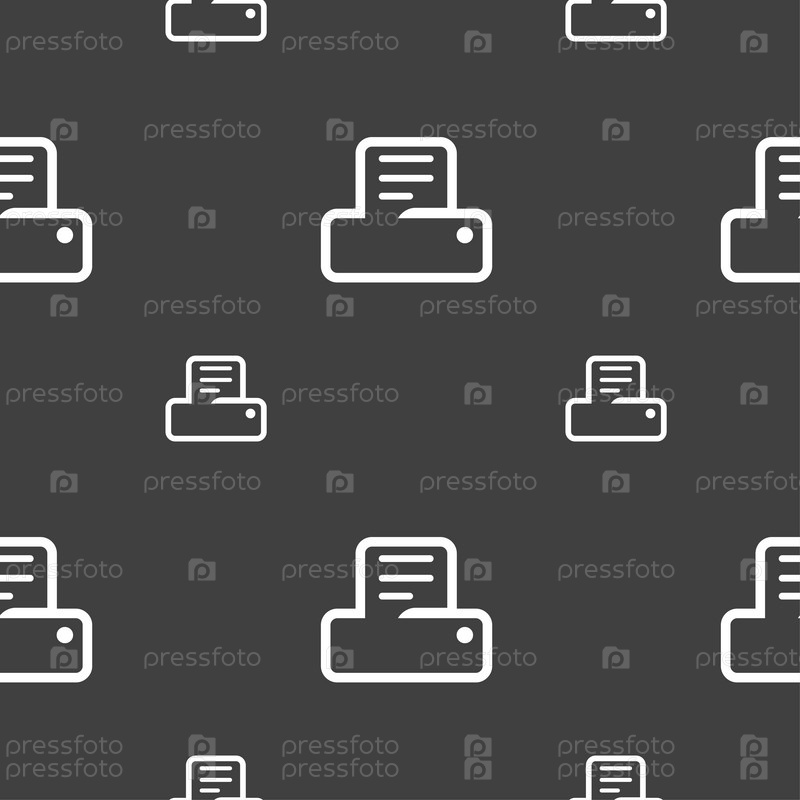 Печать значок знак. Бесшовный узор на сером фоне. Вектор