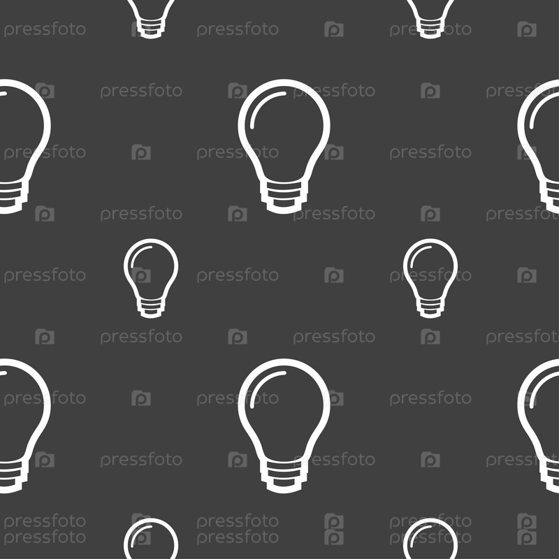 Свет лампы значок знак. Бесшовный узор на сером фоне. Вектор