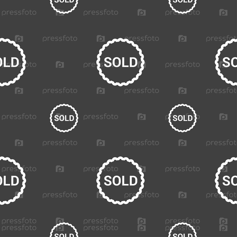 Продано значок знак. Бесшовный узор на сером фоне. Вектор
