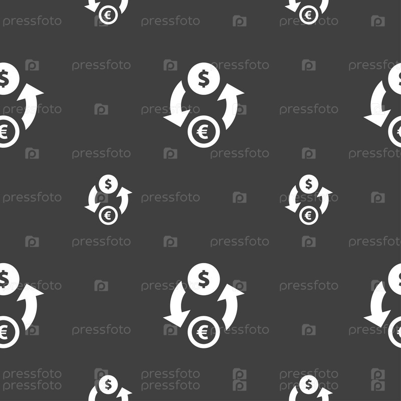 Значок знак Обмен валюты. Бесшовный узор на сером фоне. Вектор