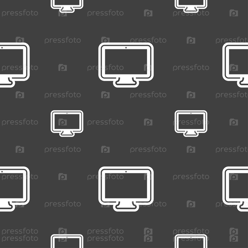 Монитор значок знак. Бесшовный узор на сером фоне. Вектор