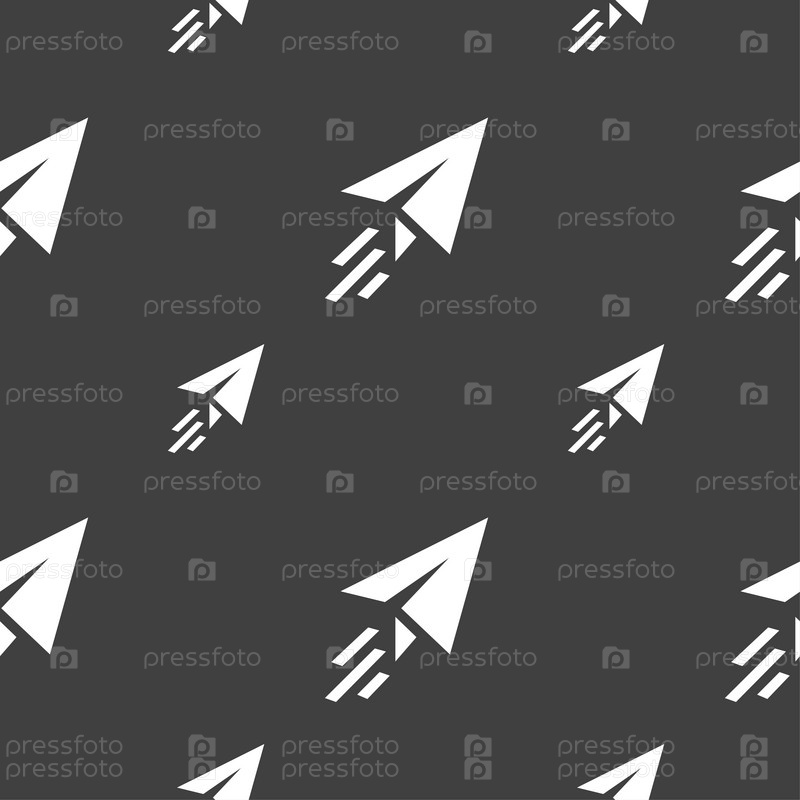 Бумага самолет значок знак. Бесшовный узор на сером фоне. Вектор