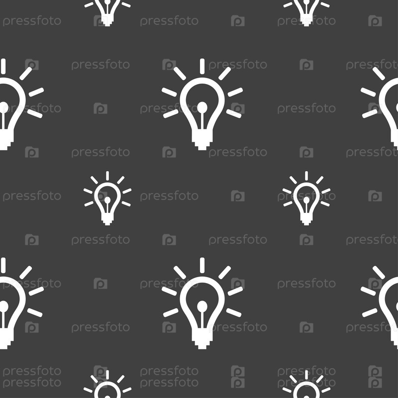 Свет лампы значок знак. Бесшовный узор на сером фоне. Вектор