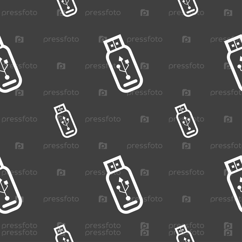 Знак значка USB-флэш диска. Бесшовный узор на сером фоне. Вектор