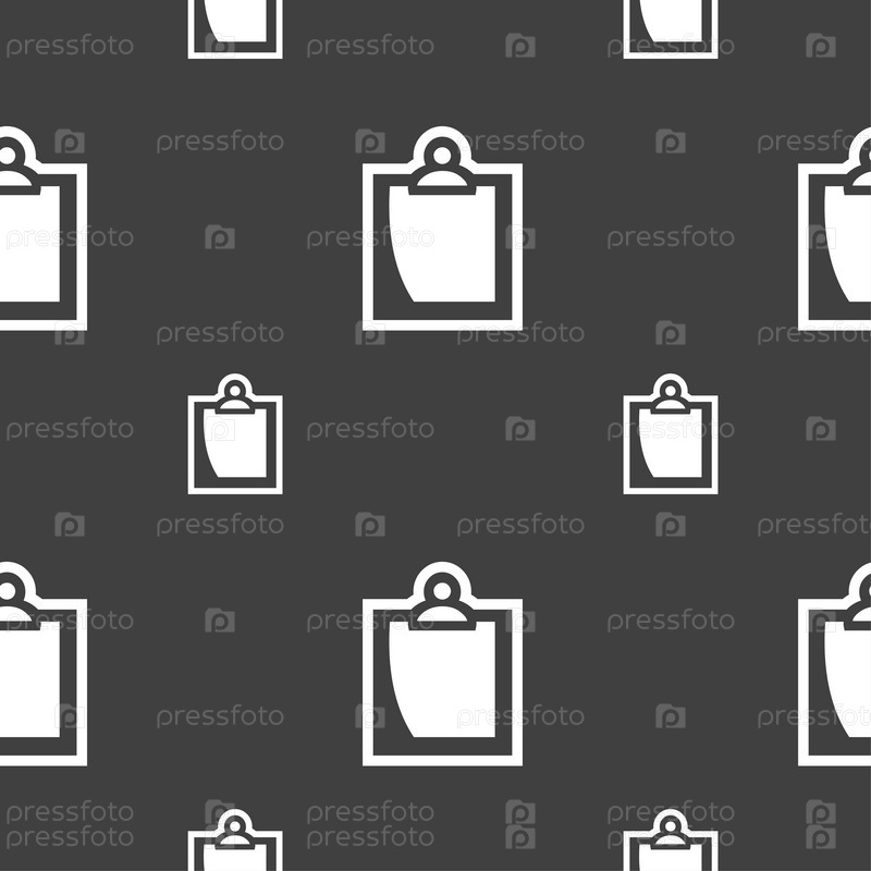 Лист бумаги значок знак. Бесшовный узор на сером фоне. Вектор