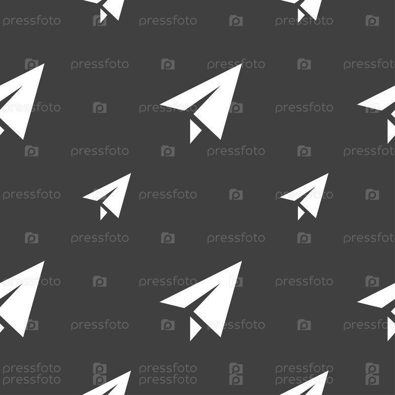 Бумага самолет значок знак. Бесшовный узор на сером фоне. Вектор