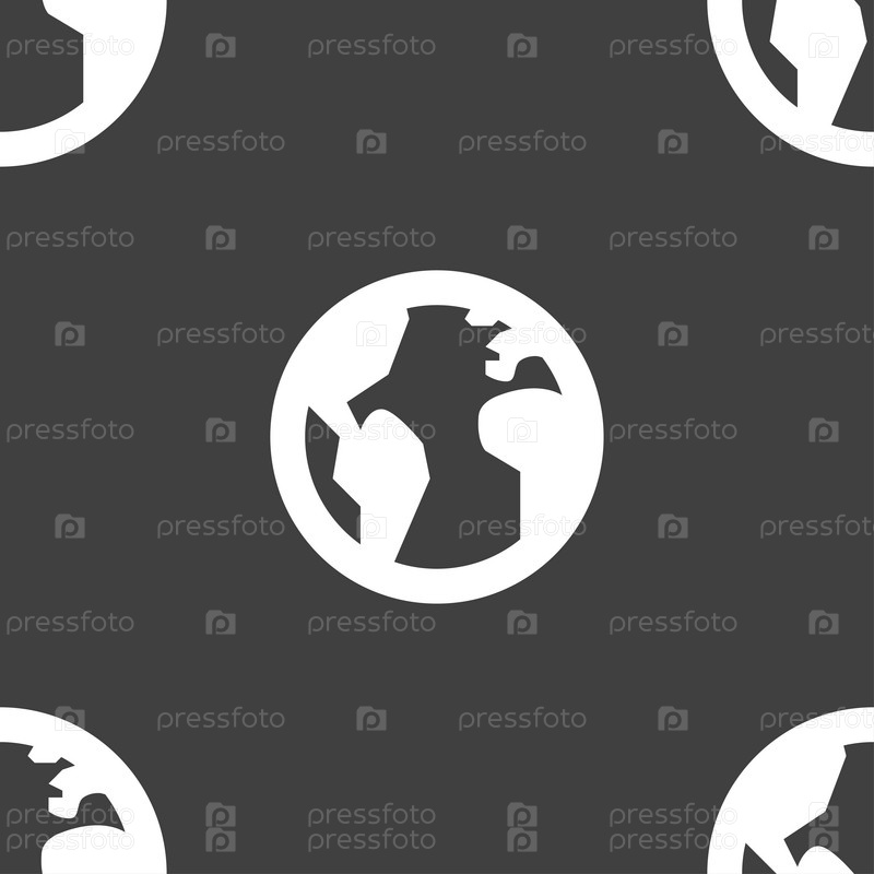 Глобус, карта мира География значок знак. Бесшовный узор на сером фоне. Вектор
