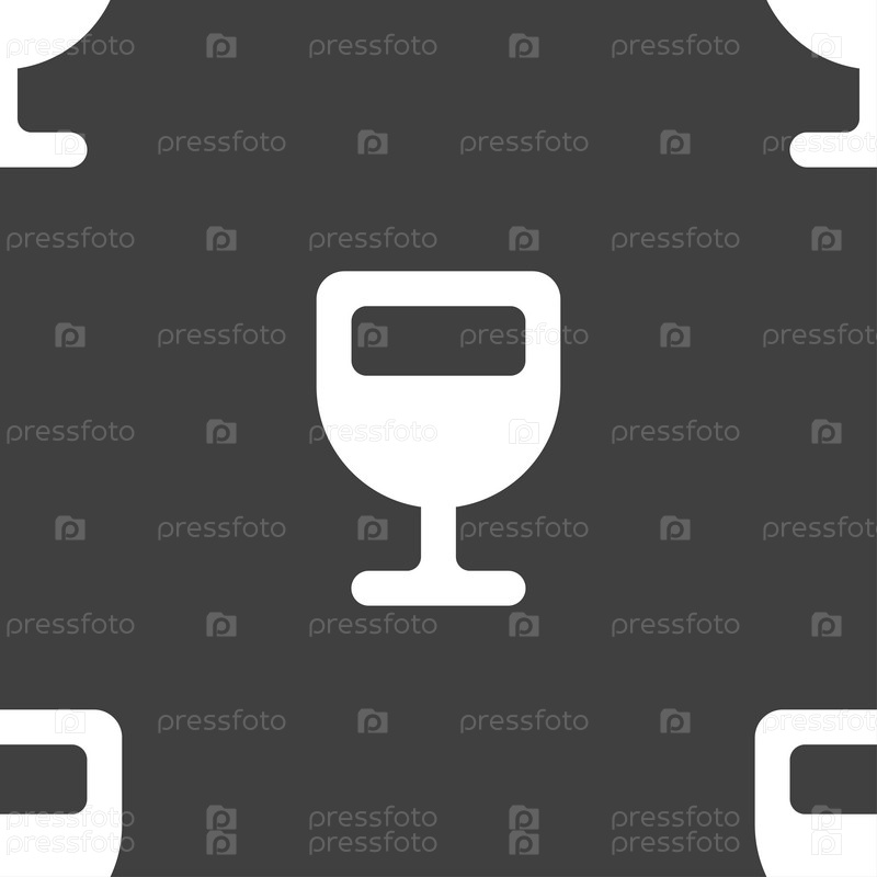 Бокал вина, алкоголя напиток значок знак. Бесшовный узор на сером фоне. Вектор