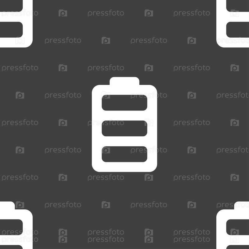 Аккумулятор полностью заряжен значок знак. Бесшовный узор на сером фоне. Вектор