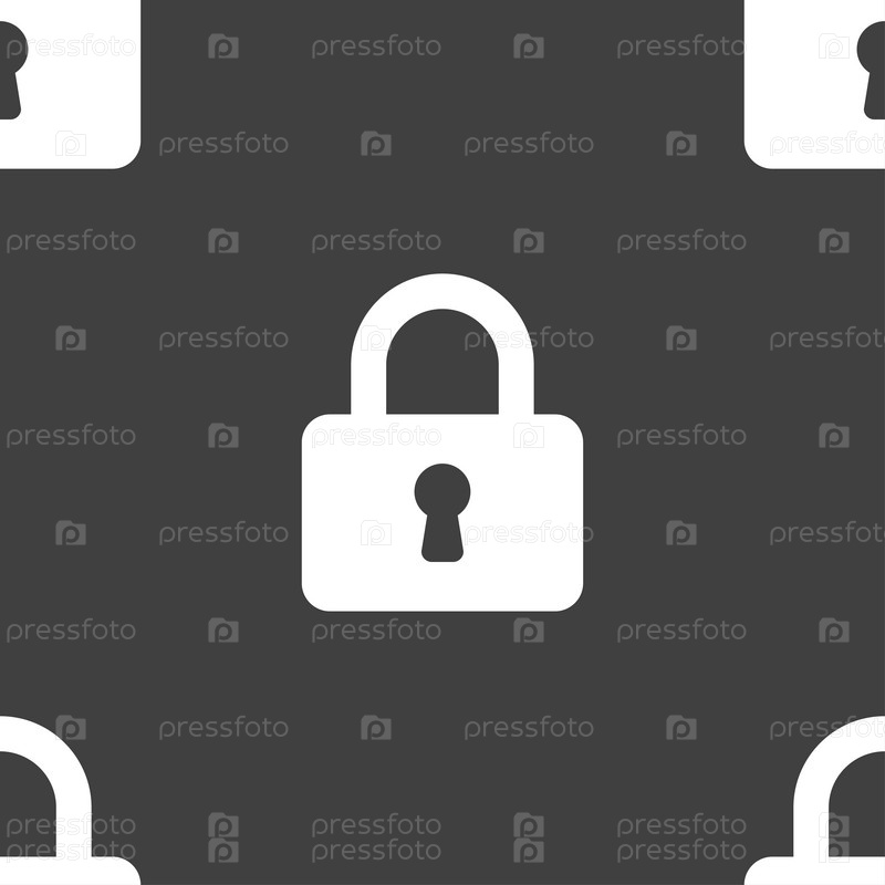 Навесной замок значок знак. Бесшовный узор на сером фоне. Вектор