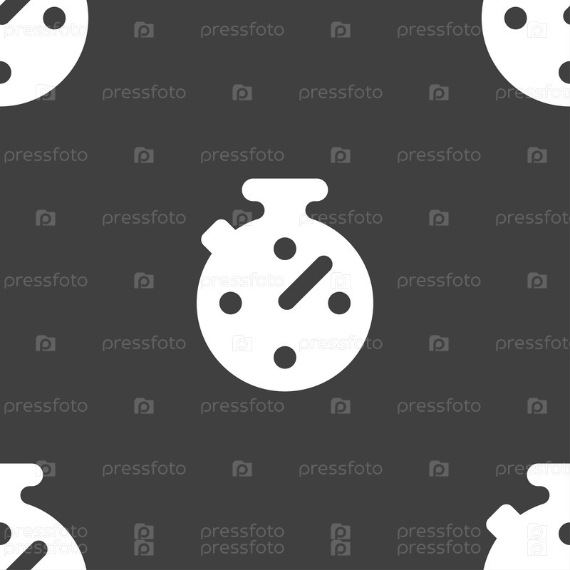 Таймер, секундомер значок знак. Бесшовный узор на сером фоне. Вектор