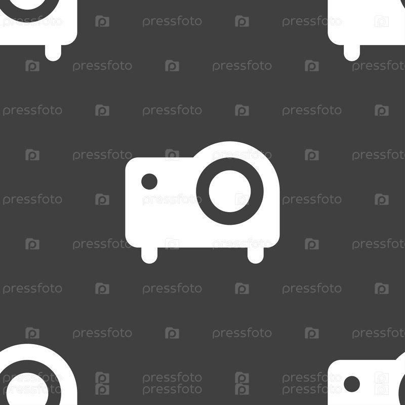 Проектор значок знак. Бесшовный узор на сером фоне. Вектор
