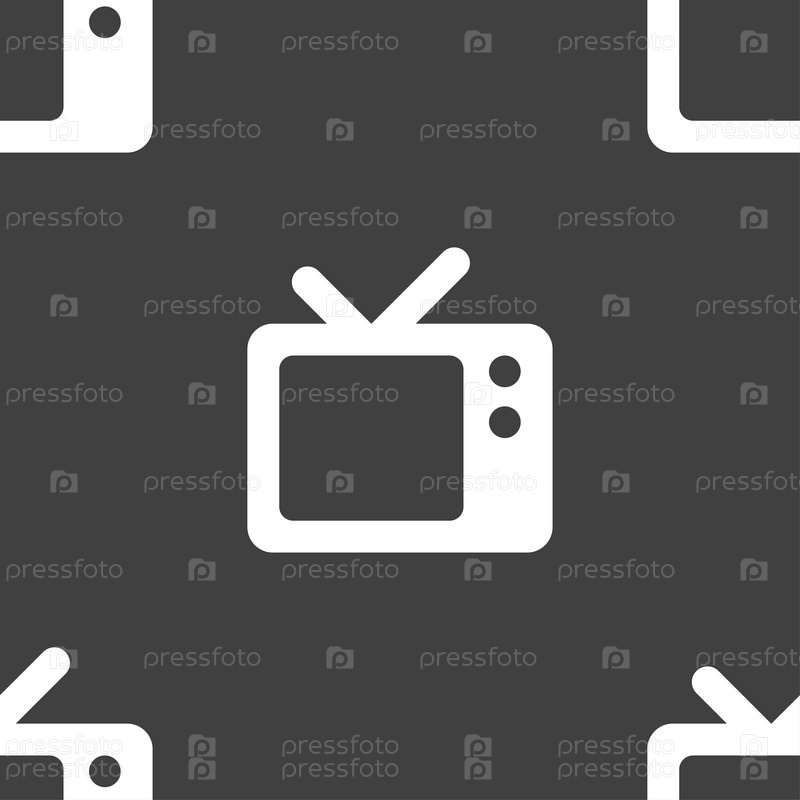 Ретро ТВ значок знак. Бесшовный узор на сером фоне. Вектор