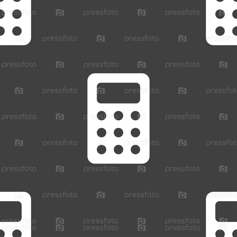 Калькулятор, бухгалтерия значок знак. Бесшовный узор на сером фоне. Вектор