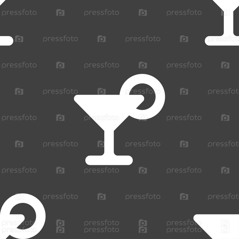 Напиток, коктейль с лимоном значок знак. Бесшовный узор на сером фоне. Вектор
