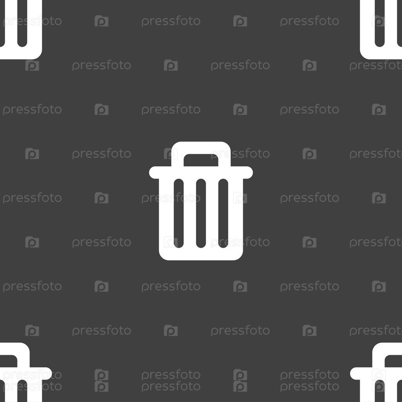Рецикл бин значок знак. Бесшовный узор на сером фоне. Вектор