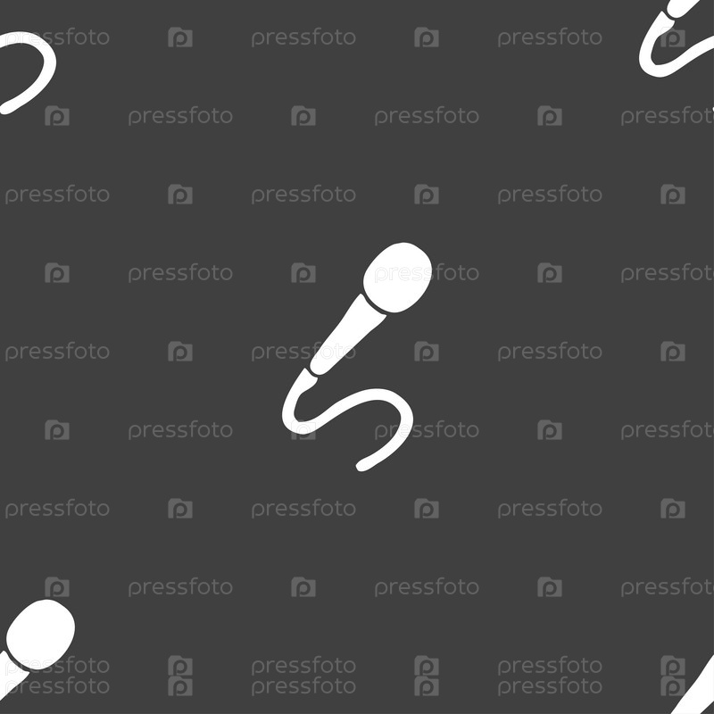 Значок микрофона знак. Бесшовный узор на сером фоне. Вектор