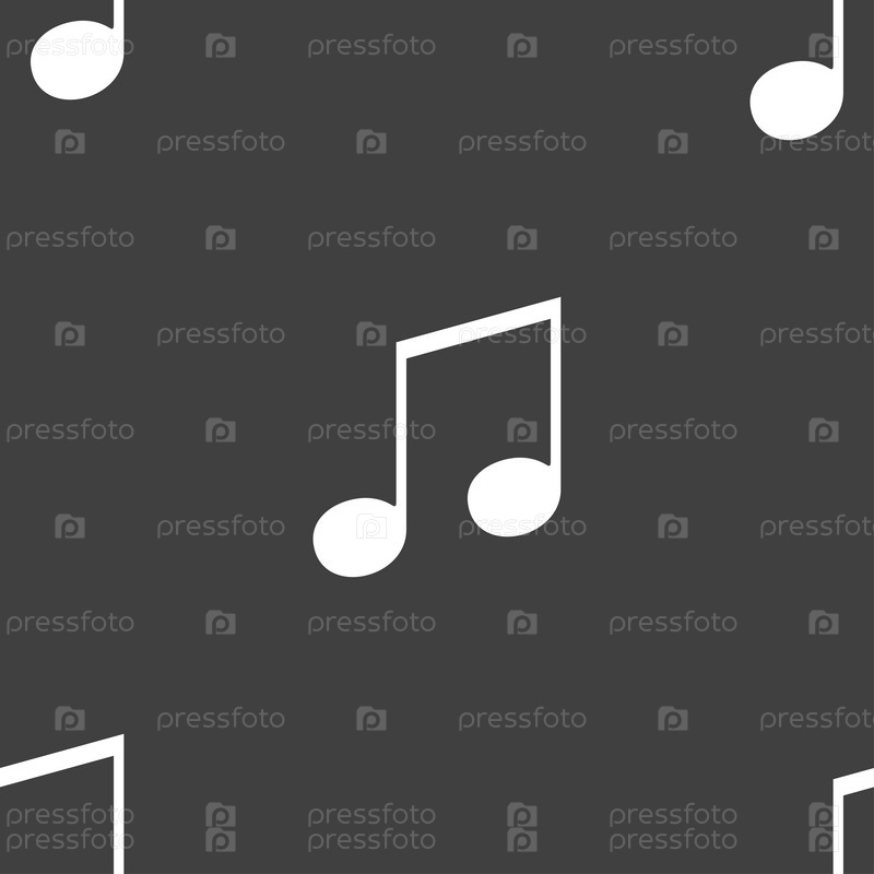Ноты, музыка, рингтон значок знак. Бесшовный узор на сером фоне. Вектор