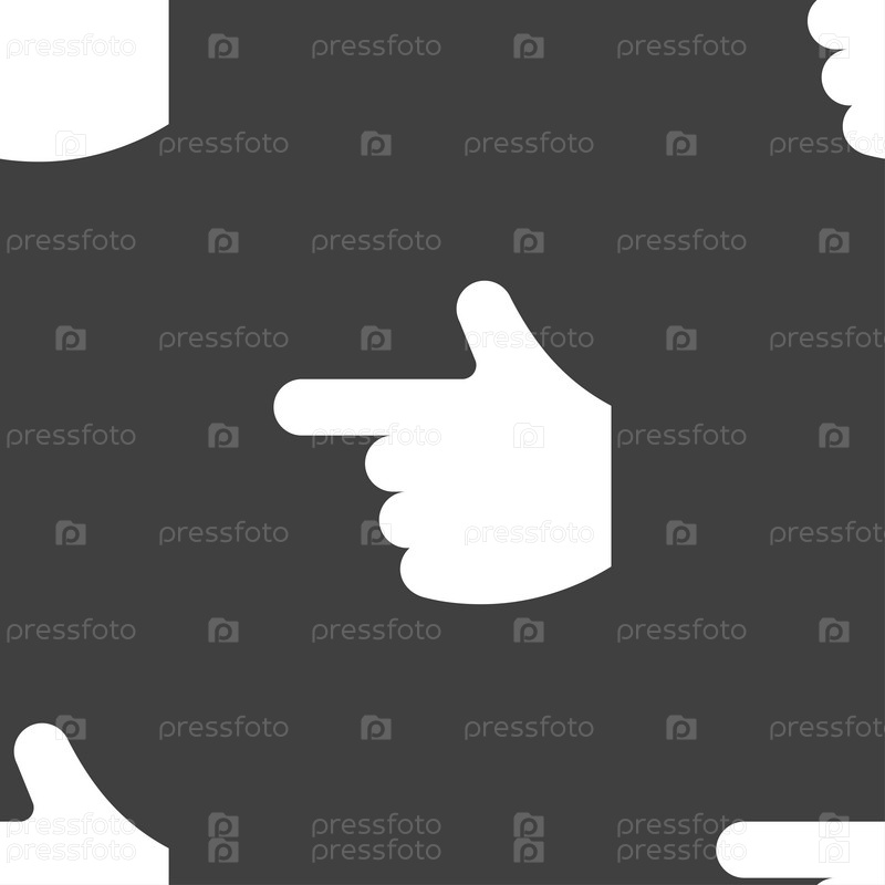 Указывает знак значок руки. Бесшовный узор на сером фоне. Вектор