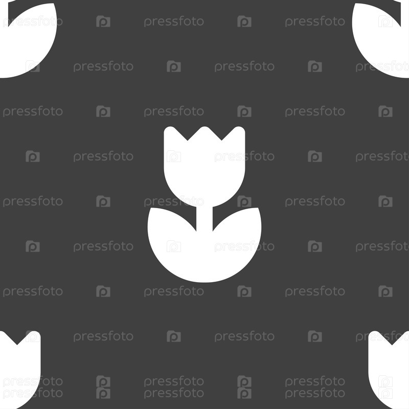 Цветок, Роза значок знак. Бесшовный узор на сером фоне. Вектор