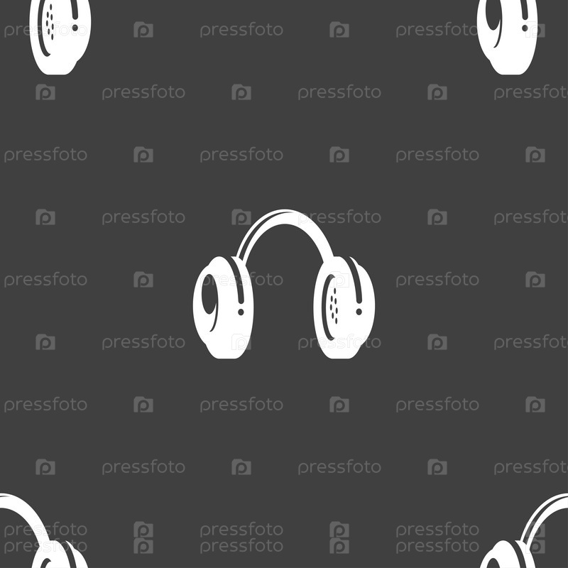 Гарнитуры значок знак. Бесшовный узор на сером фоне. Вектор