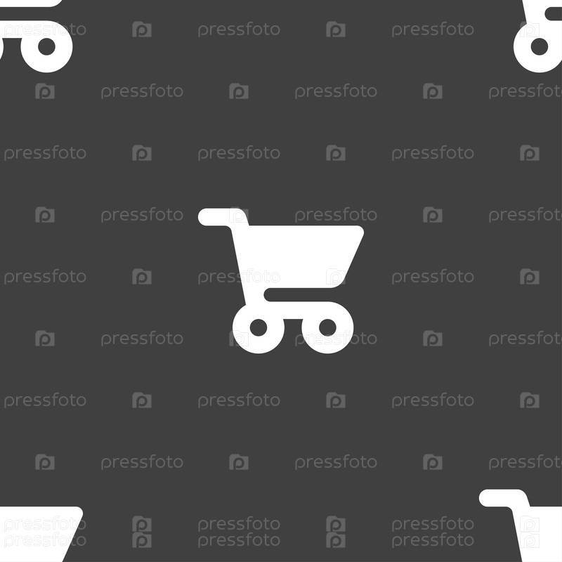Торговый знак значок Корзина. Бесшовный узор на сером фоне. Вектор