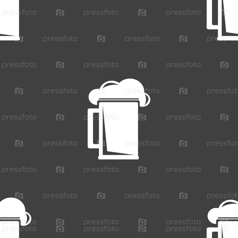 Бокал пива значок знак. Бесшовный узор на сером фоне. Вектор