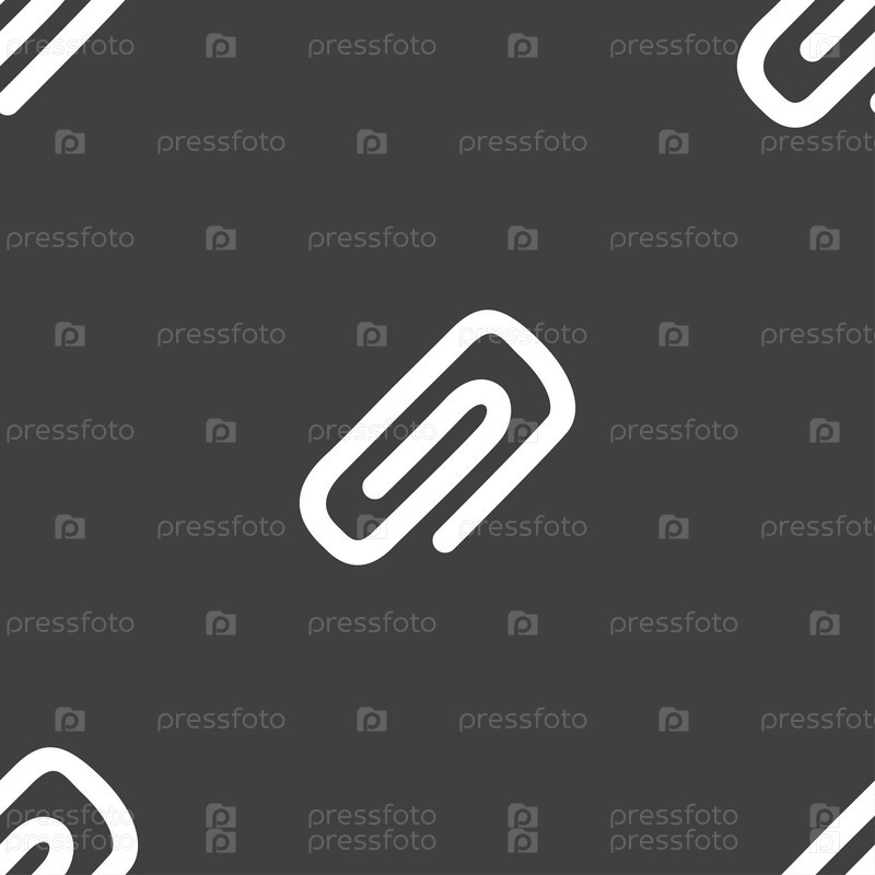 Клип на бумаге значок знак. Бесшовный узор на сером фоне. Вектор