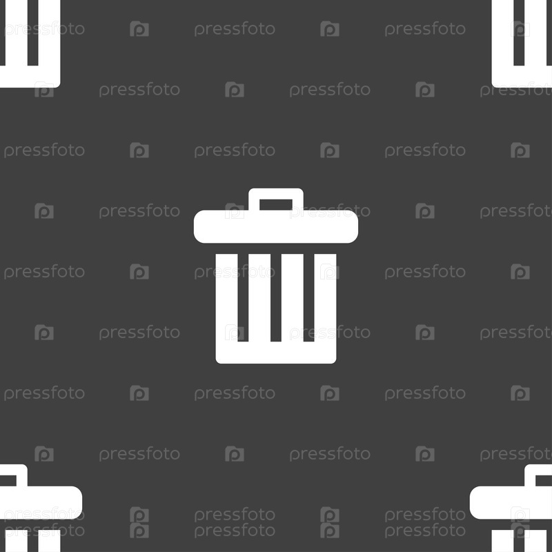 Рецикл бин значок знак. Бесшовный узор на сером фоне. Вектор