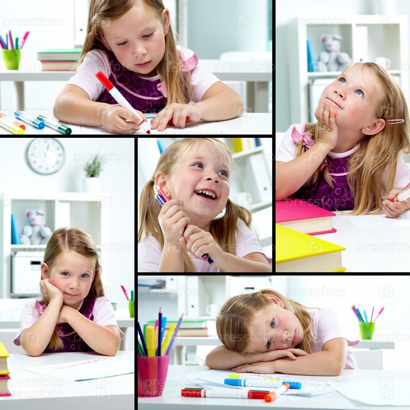 Рисующая маленькая девочка, коллаж