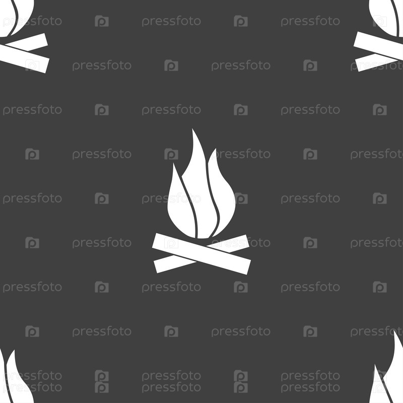 Огонь знак значок. Бесшовный узор на сером фоне. Вектор