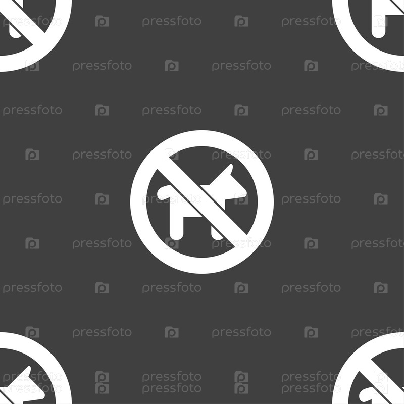 Запрещается выгул собак значок знак. Бесшовный узор на сером фоне. Вектор